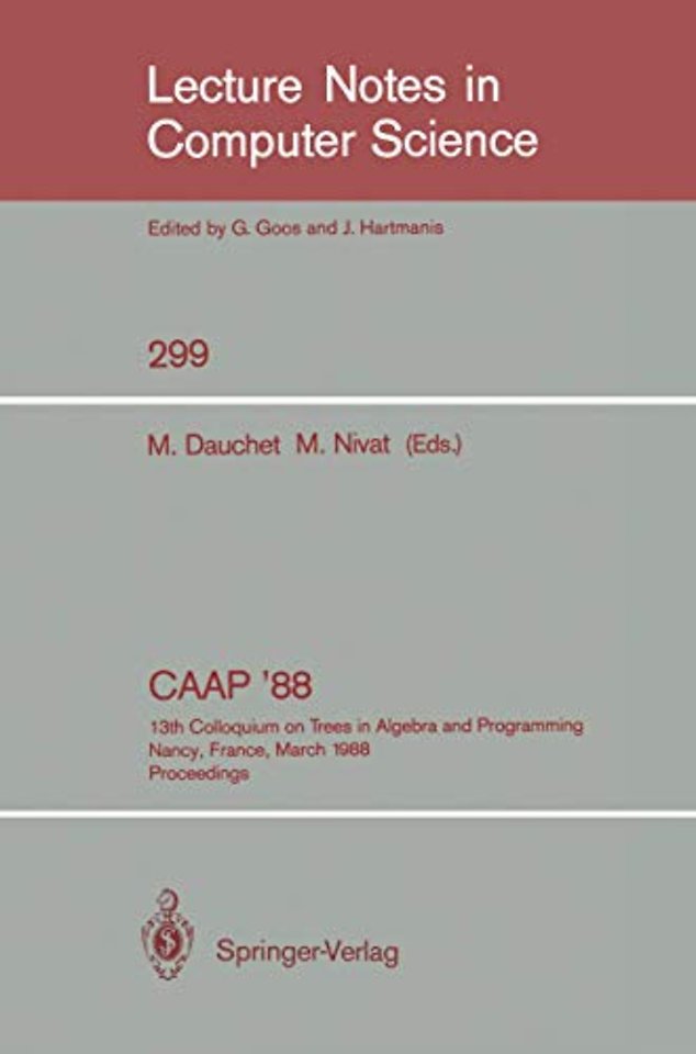 This volume contains the proceedings of the 13th Colloquium on Trees in Algebra and Programming (CAAP '88), held in Nancy, March 21-24, 1988. The preceding 12 colloquia were held in France, Italy and Germany. CAAP '85 and CAAP '87 were integrated into the International Joint Conference on Theory and Practice of Software Development, TAPSOFT (see Lecture Notes in Computer Science volumes 185 and 249). As another effort to link theory and practice in computer science, CAAP '88 was held in conjunction with the European Symposium on Programming, ESOP '88 (see volume 300 of this Lecture Notes series). CAAP '88 is a conference in the area of program development and programming concepts but, following the tradition, is devoted to theoretical aspects, and especially to Trees, a basic structure of computer science. A wider range of topics in theoretical computer science is also covered. The papers are on word, tree or graph languages, with algorithmic or complexity studies, on abstract data types (another classical topic of CAAP) and/or term rewriting systems and on non-standard logics, and parallelism and concurrency.