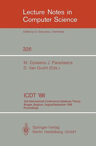 This volume is the proceedings of the second International Conference on Database Theory (ICDT) held in Bruges, Belgium, August 31 - September 2, 1988. ICDT intends to provide a European forum for the international research community working on theoretical issues related to database and knowledge base systems. The proceedings of this conference contain all invited and accepted papers, which represent the latest results obtained in ongoing research in database theory worldwide. Most major themes of research in database theory are covered in ICDT '88: the relational model, logic and databases, object-oriented databases, deductive databases, conceptual models, analysis and design of data structures, query languages, concurrency control and updates and transactions.