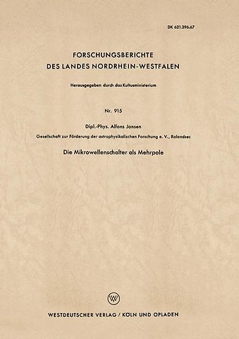 Die Mikrowellenschalter werden als passive Mehrpole betrachtet, die sich auf einen von mehreren möglichen diskreten Zuständen einstellen lassen, wobei die diskreten Zustände durch je eine Streumatrix be schrieben werden. Die vorliegende Arbeit beschränkt sich auf Vier- und Sechspolschalter mit zwei möglichen SchaltersteIlungen, weil sich be reits bei diesen die typischen Schaltereigenschaften zeigen. Entspre chend der Verwendung als Ein-Aus-schalter bzw. Umschalter werden be stimmte Forderungen für die Übertragungseigenschaften aufgestellt, die mindestens in einer Richtung zwischen den Schalteranschlüssen erfüllt sein müssen. Da diese Bedingungen nur in einer Richtung zu gelten brau chen, ist von vornherein der Existenz nichtreziproker Schalter Rechnung getragen. Es werden die den Schalterbedingungen entsprechenden Rela tionen, die zwischen gewissen Elementen der Streumatrix gelten, aufge stellt und eine systematische Einteilung der Vier- und Sechspolschal ter auf Grund reziproker und nichtreziproker Eigenschaften gewonnen. Die möglichen Schaltertypen werden diskutiert und deren Streumatrix angegeben. Daran anschließend werden entsprechende Schaltermodelle be schrieben und zwar mechanische Schalter und solche auf Ferritbasis. Seite 48 Literaturverzeichnis Die Darstellung von Mehrpolen durch die [1] SCHUON, E. und H. WOLF Streumatrix, NT Z ~ (1959), 361-366 u. 408-415 Microwave Transmission Circuits, [2] RAGAN, G. L. MIT-Rad. Lab. Series 9, Mc Graw-Hill, New York, 1948 [3] SOOHOO, R. F. A Ferrite Cutoff-Switch, Trans. IRE, MTT-7, July 1959, Nr. 3, 332-336 [4] HOGAN, C. L. The Elements of Nonreciprocal Microwave Devices, Proc. IRE 44 (1956) JO, 1345 High-Speed Magnetic Pulsing of Ferrites, [5] LECRAW, R. C. J. Appl. Phys.
