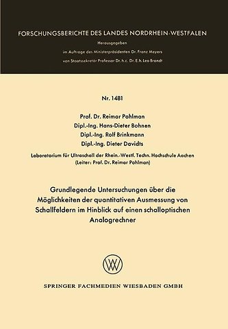 Grundlegende Untersuchungen über die Möglichkeiten der quantitativen Ausmessung von Schallfeldern im Hinblick auf einen schalloptischen Analogrechner