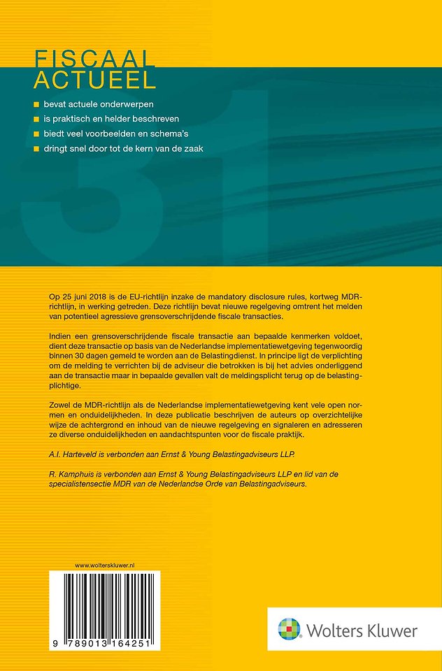 De MDR-richtlijn dient voor elke fiscalist onderdeel van het fiscale DNA te zijn. Dit boek geeft beknopt de relevante overwegingen weer van de huidige stand van de regelgeving, evenals de punten die voor de wet- en regelgever in de toekomst aandacht behoeven.