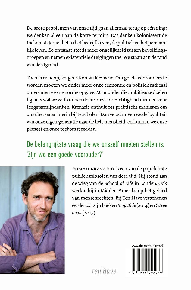 Krznaric beschrijft een nieuwe manier om in de tijd te staan, zodat we uiteindelijk een goede voorouder kunnen zijn voor de kinderen van onze kleinkinderen.
