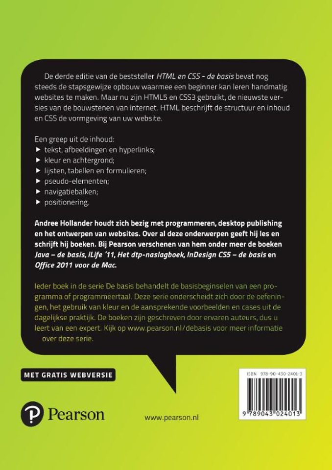 De derde editie van de bestseller 'HTML en CSS - de basis' bevat nog steeds de stapsgewijze opbouw waarmee een beginner kan leren handmatig websites te maken. Maar nu zijn HTML5 en CSS3 gebruikt, de nieuwste versies van de bouwstenen van internet. HTML beschrijft de structuur en inhoud en CSS de vormgeving van uw website.