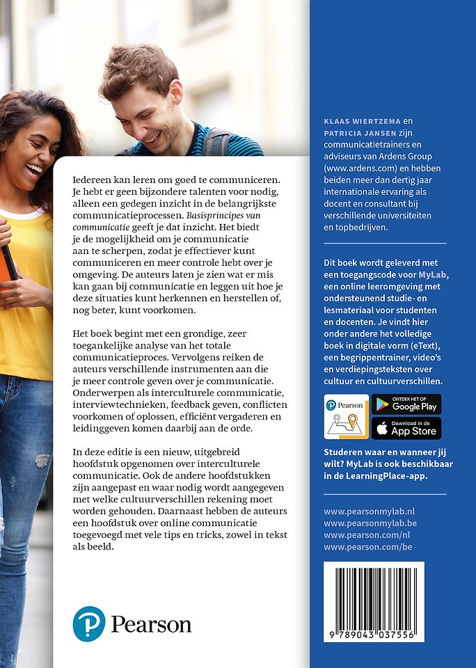 Meer over de auteursVeel tijd, geld en energie wordt verspild doordat mensen slecht communiceren. Dat is volkomen onnodig, want iedereen kan goed leren communiceren. Je hoeft er geen bijzonder talent voor te hebben, maar je hebt wel een goed inzicht nodig in de belangrijkste communicatieprocessen. Basisprincipes van communicatie geeft je dat inzicht. Het biedt je de mogelijkheid om je eigen communicatie aan te scherpen, zodat je je boodschap beter kunt overbrengen en daardoor effectiever kunt werken. De auteurs laten je zien wat er fout kan gaan en hoe je deze fouten kunt herkennen. Ook leggen zij uit hoe je communicatiefouten kunt voorkomen. Het eerste deel van dit boek bevat een grondige, maar zeer toegankelijke analyse van het totale communicatieproces. In het tweede deel reiken de auteurs verschillende instrumenten aan waarmee je controle krijgt over je communicatie. Onderwerpen zoals feedback geven, interviewtechnieken, conflicten voorkomen of oplossen, efficiënt vergaderen en leidinggeven komen daarbij aan de orde. Nieuw in deze editie - Actualisatie van de vele voorbeelden en praktijksituaties. - Een nieuw hoofdstuk over interculturele communicatie. - Extra aandacht voor online communiceren en presenteren. 'Basisprincipes van communicatie' is geschreven voor alle studenten in het hoger onderwijs. Ook professionals vinden waardevolle aandachtspunten waarmee zij hun communicatietechnieken kunnen verbeteren.