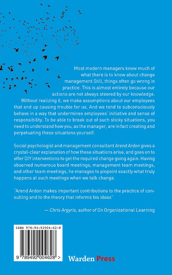 De meeste managers hebben tegenwoordig veel kennis over verandermanagement. Toch loopt het nogal eens spaak. 'Geen wonder,' zegt Arend Ardon, 'hun kennis stuurt maar zeer beperkt hun handelen. Zonder dat ze het weten hebben zij aannames over hun medewerkers die hen juist in de problemen brengen. En onbewust vertonen zij gedrag waarmee zij initiatief en verantwoordelijkheidsgevoel van medewerkers ondermijnen. Om de situatie te redden, voeren ze de druk op en maken gevoelige onderwerpen onbespreekbaar. Onbewust en onbedoeld. Zo ontstaan vicieuze cirkels en terugkerende problemen.'