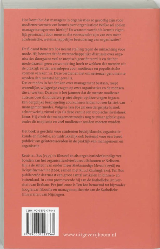 René ten Bos neemt stelling tegen de minachting voor mode. Hij beweert dat de wetenschappelijke discussie over organisaties doorgaans veel te utopisch georiënteerd is en dat het mede daarom geen verwondering hoeft te wekken dat mensen uit de praktijk eerder warmlopen voor modieuze en populistische vormen van kennis. Deze verdienen het om serieuzer genomen te worden dan meestal het geval is. Dat er modes in het denken over management bestaan, roept wezenlijke, wijsgerige vragen op over organisaties en de mensen die er werken. Daarom is het jammer dat de meeste modieuze auteurs over dit onderwerp niet dieper op deze vragen ingaan. Een dergelijke bespiegeling zou kunnen leiden tot een kritiek van managementmodes. Volgens ten Bos zal een dergelijke kritiek echter weinig zinvol zijn als deze vanuit een utopische invalshoek komt. Hij vindt dat managementmodes nog te zwaar gebukt gaan onder dit utopisme en veel modieuzer zouden moeten worden.