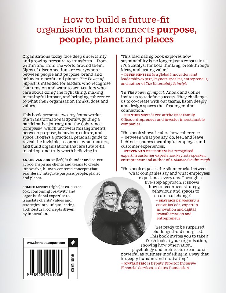 In The Power of impact, Anouk and Coline invite us to redefine success. They challenge us to co-create with our teams, listen deeply, and design spaces that foster genuine connection. - ELS THERMOTE, CEO at The Nest Family Office, entrepreneur and investor in sustainable companies