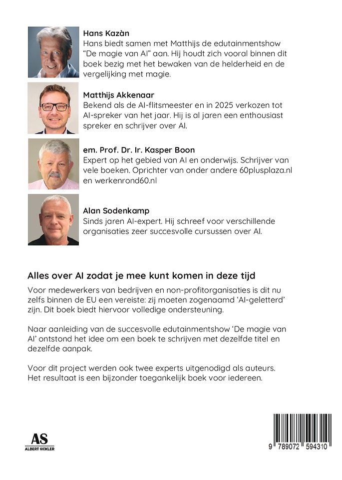 Dit boek biedt hiervoor volledige ondersteuning. AI Flitsmeester Matthijs Akkenaar en entertainer, spreker en ondernemer Hans Kazàn presenteren edutainment op topniveau met hun unieke combinatie die leren leuk maakt! De verrassingen binnen deze edutainmentshow zijn krachtig en maken dat je de aangereikte handvatten niet snel zal vergeten. De magie van AI zorgt ervoor dat mensen wijzer en met een glimlach de zaal zullen verlaten.