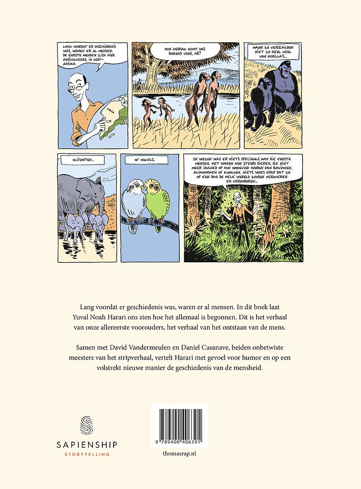geschiedenis evolutie antropologie mensensoorten homo sapiens beeldverhaal yuval noah harari soortclassificatie biologie prehistorie populairwetenschap neanderthalers taxonomie cognitieve revolutie natuurkunde oerknal scheikunde uitsterving agrarische revolutie cultuur menselijke identiteit megafauna sapiens genetica soortvorming denisovamens