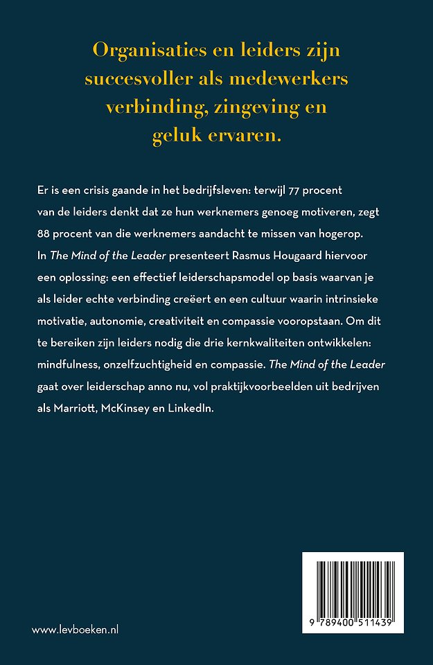 In Hoe leiders denken presenteert Rasmus Hougaard hiervoor een oplossing: een effectief leiderschapsmodel op basis waarvan je als leider echte verbinding creëert en een cultuur waarin intrinsieke motivatie, autonomie, creativiteit en compassie vooropstaan. Om dit te bereiken zijn leiders nodig die drie kernkwaliteiten ontwikkelen: mindfulness, onbaatzuchtigheid en compassie.