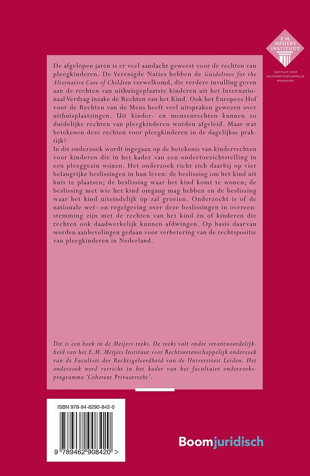 De afgelopen jaren is er veel aandacht geweest voor de rechten van pleegkinderen. De Verenigde Naties hebben de Guidelines for the Alternative Care of Children verwelkomd, die verdere invulling geven aan de rechten van uit huis geplaatste kinderen uit het Internationaal Verdrag inzake de Rechten van het Kind. Ook het Europees Hof voor de Rechten van de Mens heeft veel uitspraken gewezen over uithuisplaatsingen. Uit kinder- en mensenrechten kunnen zo duidelijke rechten van pleegkinderen worden afgeleid. Maar wat betekenen deze rechten nu voor pleegkinderen in de dagelijkse praktijk?