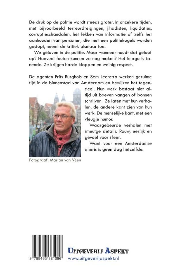 De agenten Frits Burghols en Sem Leenstra werken geruime tijd in de binnenstad van Amsterdam en bewijzen het tegendeel. Hun werk bestaat niet altijd uit boeven vangen of bonnen schrijven. Ze laten met hun verhalen, de andere kant zien van hun werk. De menselijke kant, met een vleugje humor. Waargebeurde verhalen met smeuïge details. Rauw, eerlijk en gevoel voor sfeer. Want voor een Amsterdamse smeris is geen dag hetzelfde.