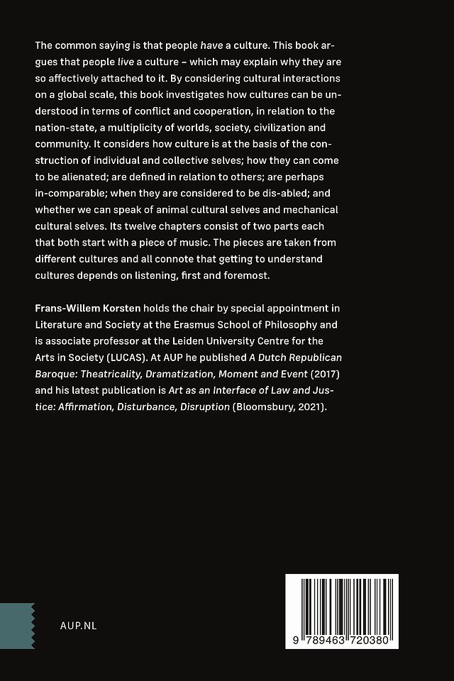 It considers how culture is at the basis of the construction of individual and collective selves; how they can come to be alienated; are defined in relation to others; are perhaps incomparable; when they are considered to be disabled; and whether we can speak of animal cultural selves and mechanical cultural selves. Its twelve chapters consists of two parts each that both start with a piece of music. The pieces are taken from different cultures and all connote that getting to understand cultures depends on listening, first and foremost.