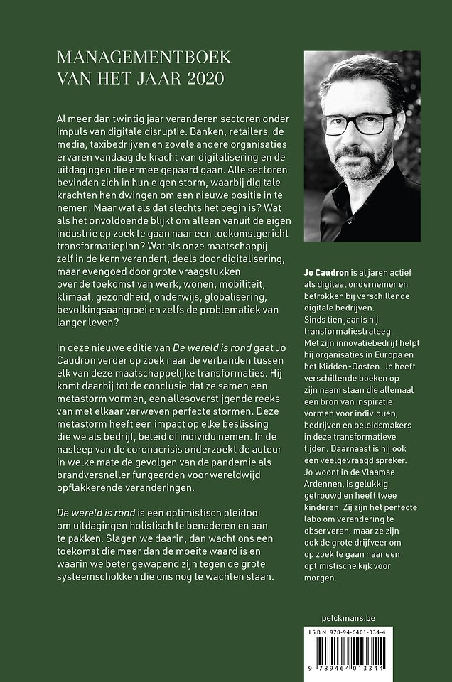 De wereld is rond is een optimistisch pleidooi om uitdagingen holistisch te benaderen en aan te pakken. Slagen we daarin, dan wacht ons een toekomst die meer dan de moeite waard is en waarin we beter gewapend zijn tegen de grote systeemschokken die ons nog te wachten staan. Jo Caudron is al jaren actief als digitaal ondernemer. Sinds tien jaar is hij transformatiestrateeg.