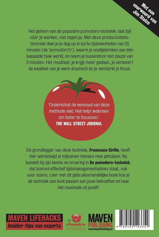 Meer over Francesco Cirillo'De pomodoro-techniek' staat bomvol effectief tijdsmanagementadvies. Je leert hoe je de techniek kunt aanpassen aan jouw behoeften en er zo maximaal profijt uit kunt halen. Daarnaast leer je inschatten hoeveel tijd het kost om een taak te voltooien, hoe je je productiviteit kunt monitoren en persoonlijke doelen kunt stellen die haalbaar zijn.