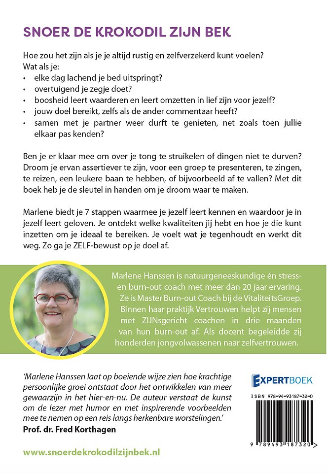 'Marlene Hanssen laat op boeiende wijze zien hoe krachtige persoonlijke groei ontstaat door het ontwikkelen van meer gewaarzijn in het hier-en-nu. De auteur verstaat de kunst om de lezer met humor en met inspirerende voorbeelden mee te nemen op een reis langs herkenbare worstelingen.' - Prof. dr. Fred Korthagen
