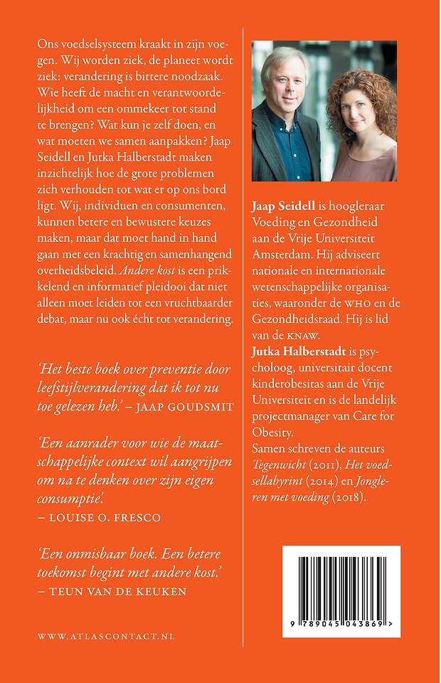Ons huidige voedselsysteem kraakt in zijn voegen. Wij worden ziek, de planeet wordt ziek: verandering is bittere noodzaak. Maar wie heeft de macht en verantwoordelijkheid om zo’n ommekeer tot stand te brengen? Wat kun je zelf doen, en wat kunnen we samen? Over die vragen buigen Jaap Seidell en Jutka Halberstadt zich in Andere kost. Ze laten zien dat je als individu een bijdrage kunt leveren door betere, bewuste keuzes. Maar zo’n individuele benadering alleen schiet ernstig tekort.